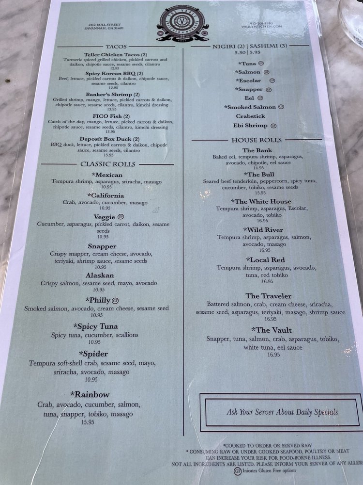 Welcome to The Vault Kitchen & Market, a culinary gem nestled in Savannah at 2112 Bull St. This trendy spot effortlessly marries a vibrant ambiance with an eclectic menu that caters to diverse tastes. From the tantalizing Teller Chicken Tacos to the exquisite miso salmon, every dish reflects a commitment to flavor and quality. Vegetarian and vegan options are plentiful, ensuring everyone leaves satisfied.